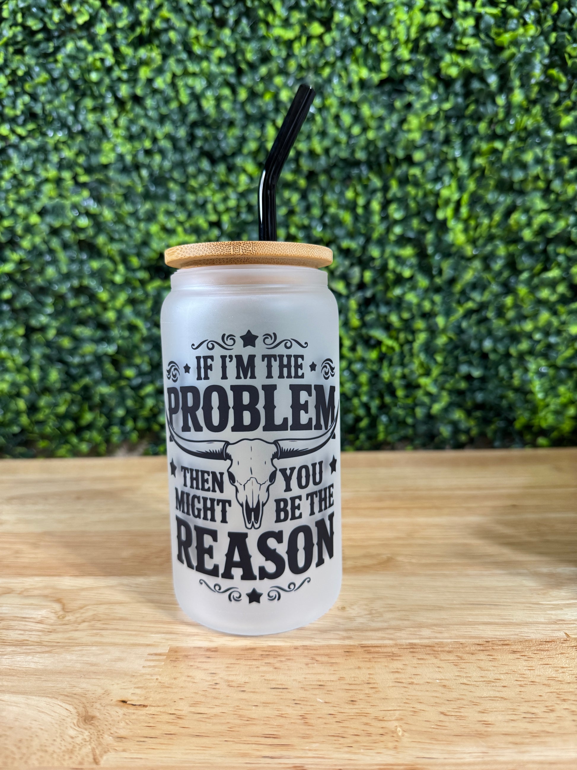 1 Glass 16 oz tumbler with 1 bamboo lid and 1 plastic straw with the image.
